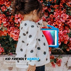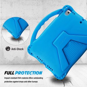 حافظة حماية بروكيس كيدز لجهاز ايباد اير 9.7 (الموديل القديم) الجيل السادس والخامس 2017، 2018/ ايباد اير 2، اير 1/ ايباد برو 9.7 2016 للاطفال، متينة مقاومة للصدمات وخفيفة الوزن للغاية مع مسند – ازرق