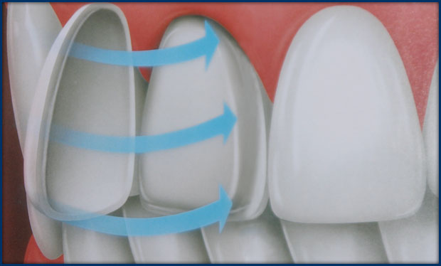 إن الوجوه الخزفية التجميلية للأسنان تشبه إلى حد كبير العدسات اللاصقة، ولكنها مصنعة من البورسلين فقط وتحتاج إلى تحضير للأسنان تغطي سطحا واحدا أو سطحين من السن، مختلفة بذلك عن التيجان الخزفية التي تغطي كامل السن. ومن الشائع استخدامها لتغطية الأسنان الأمامية.