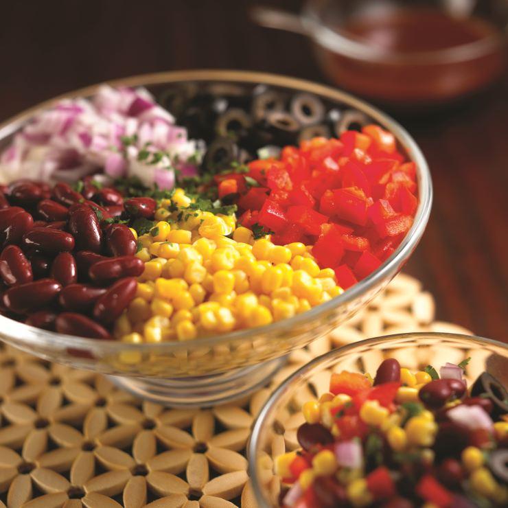 - اخلط الذرة والفول والبصل والثوم والفلفل والزيتون والكزبرة في وعاء كبير.